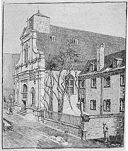 La façade de l'église, démontée, est remontée pour orner l'église du monastère des Récollets[1] jusqu'à sa démolition en 1867[2].