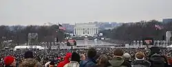 Pour la première fois dans l'histoire, le Presidential Inaugural Committee ouvrit au public le National Mall dans toute sa longueur, du Capitole des États-Unis au Lincoln Memorial, pour qu'il assiste à la cérémonie[21]. La partie du Mall la plus proche du Capitole fut réservée aux personnes possédant des billets réservés[21],[22],[23]. Le comité voulait faire de cet évènement « le plus ouvert et accessible dans l'histoire[24] », afin de permettre à ceux qui n'avaient pu obtenir de billet réservé d'assister à la cérémonie depuis le reste du Mall[21] ; des JumboTrons, de grands écrans télévisés, furent installés tout le long du Mall[25].