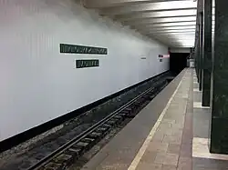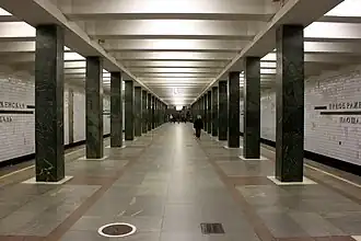 Elle est conçue et réalisée par l'architecte Nikolaï Demtchinski et l'ingénieur G. Suvorov. Peu profonde, la station est construite suivant un plan standard avec deux rangées de quarante piliers, à base carrée, établis sur le quai central. La finition est faite : de marbre à dominante de vert, sur les piliers, de carreaux blancs, sur les murs, et de pavés en granit gris et rouge sur le sol[3].