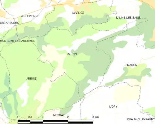 - ↑ « Orthodromie entre Pretin et Arc-et-Senans », sur fr.distance.to (consulté le ).