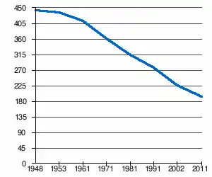 - 1 2 (sr + en) « Livre 20 : Vue d'ensemble comparative de la population en 1948, 1953, 1961, 1971, 1981, 1991, 2002 et 2011, données par localités) » [PDF], pages du recensement de 2011 en Serbie - Institut de statistique de la république de Serbie, (consulté le )
