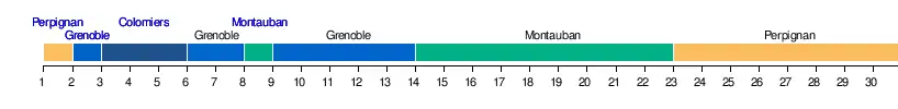| USA Perpignan | 1 | 3 | 3 | 2 | 2 | 3 | 3 | 4 | 3 | 5 | 5 | 3 | 4 | 5 | 4 | 3 | 3 | 3 | 3 | 3 | 2 | 2 | 1 | 1 | 1 | 1 | 1 | 1 | 1 | 1 |