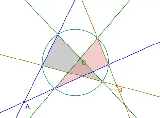 « Étant donné un cercle et trois points A, B et C, construire à la règle et au compas un triangle inscrit dans le cercle et dont les côtés passent respectivement par les points A, B et C. »