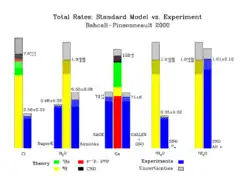 Connaissant l'énergie rayonnée par le Soleil, et la partie de l'énergie de fusion emportée par un neutrino, on en déduit facilement la quantité de neutrinos s'échappant du soleil par unité de temps. On en déduit donc, connaissant la distance Terre-Soleil, le flux théorique de neutrinos par unité de surface et par unité de temps au niveau de la Terre. Enfin, à partir des caractéristiques du détecteur, on trouve la quantité de neutrinos que l'on doit détecter par jour dans ce flux. Or, toutes les expériences (sur différentes échelles de temps, avec plusieurs détecteurs reposant sur des principes différents) ont montré que ne parvient sur Terre en fait qu'entre la moitié et les deux tiers des neutrinos attendus, ce qui sort de toutes les incertitudes acceptables.