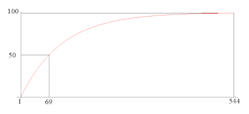 Ce nombre est . Ainsi, le temps d'attente moyen pour obtenir la moitié de la collection est linéaire en la taille de la collection ; il est inférieur au temps d'attente total qui est linéarithmique (voir complexité en temps).