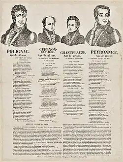 | Portraits des accusés. De gauche à droite, et de haut en bas : Polignac, Chantelauze, Guernon-Ranville et Peyronnet. | |
