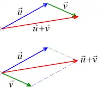La somme de deux vecteurs et est un vecteur, noté , qui est construit de la manière suivante :