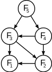 Le graphe de dépendance montré sur la droite n'est pas un arbre : cela illustre que les sous-problèmes se chevauchent. Par exemple, pour calculer F5, nous avons besoin de F3 et F4. Mais pour calculer F4, nous avons besoin de F2 et F3. Ainsi, F3 est utile à la fois pour le calcul de F4 et pour le calcul de F5. La programmation dynamique consiste alors à stocker les valeurs des sous-problèmes pour éviter les recalculs[3]. Il existe alors deux méthodes pour calculer effectivement une solution : la méthode ascendante et la méthode descendante. Dans la méthode ascendante, on commence par calculer des solutions pour les sous-problèmes les plus petits, puis, de proche en proche, on calcule les solutions des problèmes en utilisant le principe d'optimalité et on mémorise les résultats dans un tableau F[.]. Par exemple :