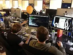La programmation en binôme peut également être établie à distance[25]. Dans ce cas, des outils dédiés au travail collaboratif sont souvent mis en place, en vue notamment de partager l’affichage (Mikogo) ou le code source (XPairtise[26], Saros[27], Cloud9), de communiquer à distance (Skype), ou encore d'exécuter des instructions sur une machine distante (SSH)[28].