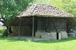 Le séchoir à céréales possède de hautes fondations en pierres. Le bâtiment entier est fait de poutres, de piliers et de maçonnerie. Le toit à deux pans est recouvert de tuiles[2].