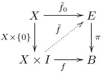 Si l'application satisfait la propriété de relèvement des homotopies par rapport à tout espace X, alors s'appelle une fibration.