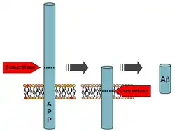 Cette voie, toxique, aboutit également à la production d'une région N-terminale sécrétée, mais plus courte (sAPPβ), du peptide β-amyloïde (Aβ) et du domaine intracellulaire AICD par les clivages successifs de la β-sécrétase puis de la γ-sécrétase.