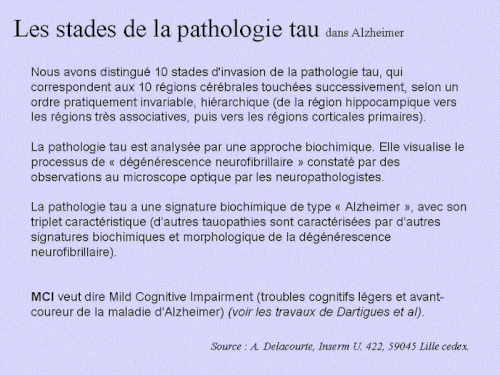 - ↑ Delacourte A, David JP, Sergeant N, et al. « The biochemical pathway of neurofibrillary degeneration in aging and Alzheimer's disease ». Neurology 1999 ; 52 : 1158-65.