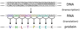 Le code génétique établit la correspondance entre un triplet de bases nucléiques, appelé codon, sur l'ARN messager et un acide α-aminé protéinogène. Cette correspondance est réalisée in vivo par les ARN de transfert, qui sont des ARN comptant une centaine de nucléotides tout au plus et portant un acide aminé estérifiant leur extrémité 3’-OH. Chacun des acides aminés est lié à des ARN de transfert spécifiques, portant des codons eux aussi spécifiques, de sorte que chacun des 64 codons possibles ne peut coder qu'un seul acide aminé. En revanche, chacun des 22 acides aminés protéinogènes peut être codé par plusieurs codons différents. Ce sont les enzymes réalisant l'estérification des ARN messagers avec les acides aminés — les aminoacyl-ARNt synthétases — qui maintiennent le code génétique : en effet, ces enzymes se lient spécifiquement à la fois à un ARN de transfert donné et à un acide aminé donné, de sorte que chaque type d'ARN de transfert n'est estérifié que par un acide aminé spécifique.