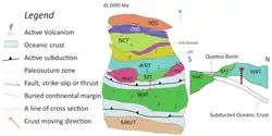 - Magmatisme granitoïde[18] - Métamorphisme formant des amphibolites causé par l'accrétion tectonique[2] |