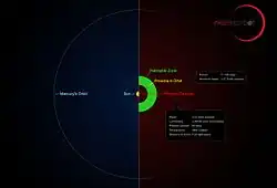 Proxima Centauri b ou, plus simplement, Proxima b, est une planète en orbite (à 0,05 ua) dans la zone habitable de Proxima Centauri[12]. Sa découverte a été officiellement annoncée le par l'Observatoire européen austral (ESO)[13],[14].