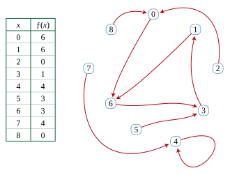 La détection de cycle est le problème algorithmique qui consiste à suivre un chemin dans un graphe fonctionnel pour y trouver un cycle ; ce problème a des applications en cryptographie et en théorie algorithmique des nombres, dans le cadre de algorithme rho de Pollard pour la factorisation d'entiers et en tant que méthode pour détecter des collisions dans les fonctions de hachage cryptographiques . Dans ces applications, on s'attend à ce que ƒ se comporte de manière aléatoire ; Flajolet et Odlyzko[13] étudient les propriétés théoriques des graphes fonctionnels issus de fonctions tirées au hasard. En particulier, une forme du paradoxe des anniversaires implique que, dans un graphe fonctionnel aléatoire à n sommets, le chemin partant d'un sommet sélectionné au hasard revient en général sur lui-même pour former un cycle en O( √n ) pas. Koniaguine et al. ont fait des progrès analytiques et informatiques sur les statistiques des graphes[14].