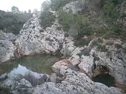 des collines dispersées sur le territoire communal, souvent coiffées de pinèdes (Saint-Christophe, 193 mètres d'altitude; Les Goudailles, 171 m; Roquecourbe, 133 m; Meyran, 101 m)
