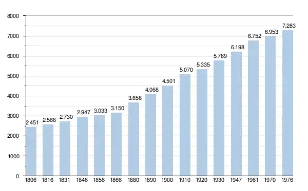 - Source : DGS - Remarque: 1831 jusqu'à 1981=recensement; depuis 1990=nombre d'habitants chaque 1er janvier[4]