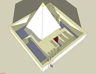 La pyramide occupait le centre d'un petit complexe funéraire dédié à la reine et dont les fouilles ont révélé un péribole, ainsi qu'un petit temple funéraire accolé à l'est de la pyramide.