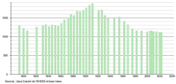 - ↑ Fiches Insee - Populations de référence de la commune pour les années 2006, 2007, 2008, 2009, 2010, 2011, 2012, 2013, 2014, 2015, 2016, 2017, 2018, 2019, 2020, 2021 et 2022.