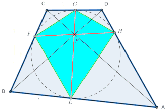 Si une droite coupe un quadrilatère circonscriptible en deux polygones d' aires égales et de périmètres égaux, alors cette droite passe par le centre du cercle inscrit[7].