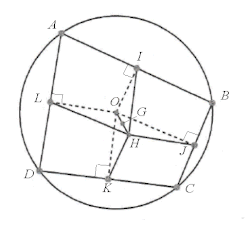 Avec les notations A,B,C,D,I,J,K,L de la figure, soient O le centre du cercle circonscrit et G le centre de gravité des sommets. On sait que G est le milieu de la bimédiane [IK]; si on note H le symétrique de O par rapport à G, le quadrilatère OIHG est un parallélogramme, ses diagonales se coupant en leur milieu. Or (OK) est perpendiculaire à (DC) donc également (IH): la droite passant par I et perpendiculaire au côté opposé passe dont par H, et de même pour les trois autres.