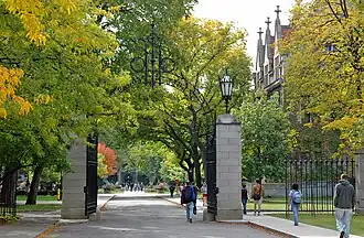L'un des portiques de l'université de Chicago, lieu de la première scène du film.