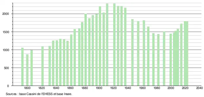 - ↑ Fiches Insee - Populations de référence de la commune pour les années 2006, 2007, 2008, 2009, 2010, 2011, 2012, 2013, 2014, 2015, 2016, 2017, 2018, 2019, 2020, 2021 et 2022.