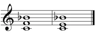 ? Écouter [Fiche]Une quarte augmentée, une fois renversée, donne une quinte diminuée. Ces deux intervalles sont équivalents ; ils sont tous deux composés de trois tons, d'où leur nom de "triton". Le triton est considéré comme fortement dissonant, ce qui lui a valu d'être appelé Diabolus In Musica par le compositeur Andreas Werckmeister en 1702, expression qui remonterait au Moyen Âge[3], et de devenir une des notes bleues en jazz.