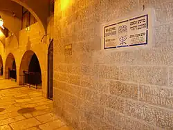 - Sur la façade des 4 synagogues séfarades, la plaque no 2 Sephardi synagogues (בתי הכנסת הספרדיים).