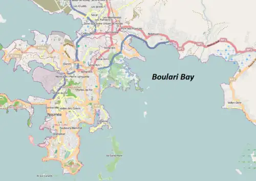 ![]() Plan de Nouméa, centré sur la baie de Boulari à l'est. | ||