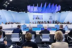 Lors de la séance plénière d'ouverture, la présidente suisse Viola Amherd a annoncé que 87 pays avaient signé le communiqué du sommet mondial pour la paix[46].