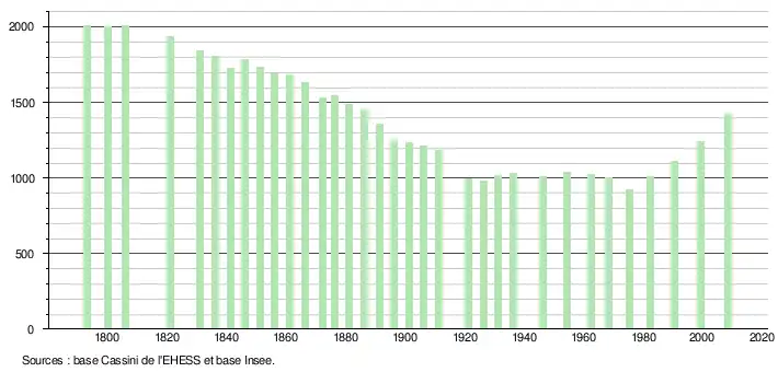 - ↑ Fiches Insee - Populations légales de la commune pour les années 20062007 2008 2009 2010 20112012201320142015 2016 2017 2018 .