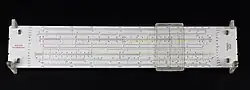 Les règles à calcul comportent le plus souvent une échelle de logarithmes en base 10, sur la face avant ou arrière de la règle selon les cas.