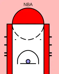 En NBA, cette zone est aussi l'objet d'une règle des trois secondes pour les défenseurs, sauf face à son opposant direct (quand le joueur est en « position active de défense »)[1]. Elle entre en vigueur en WNBA en 2013, cette violation étant sanctionnée par une faute technique (un lancer franc et balle redonnée à l'équipe en attaque)[2].