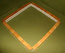 - Muraille : quatre murs de tuiles constituant la pioche, l'appellation Mur est aussi couramment utilisée