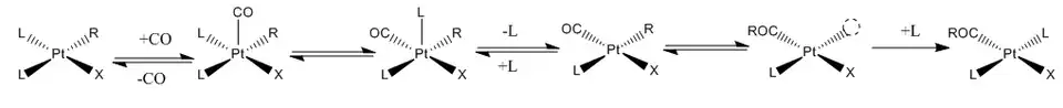 Beaucoup de réactions en chimie organométallique impliquent l'insertion d'un ligand (L) dans une liaison métal-hydrure ou métal-alkyle/aryle. En général, c'est l'hydrure, l'alkyle ou l'aryle qui migre sur L, qui est souvent un groupe CO, un alcène ou un alcyne.