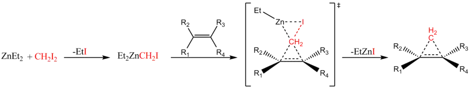 - ↑ (en) H. E. Simmon et R. D. Smith, « A new synthesis of cyclopropanes from olefins », J. Am. Chem. Soc., vol. 80, no 19, , p. 5323-5324 (ISSN 0002-7863, DOI 10.1021/ja01552a080).