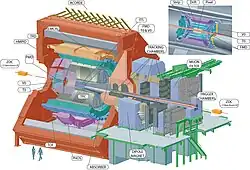 Un détecteur (ALICE) du LHC au CERN (Noter l'échelle humaine, en bas à gauche)