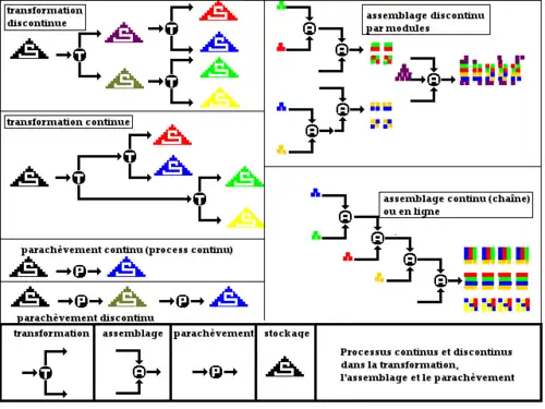 - l'assemblage, qui utilise des composants prêts à être montés, vissés, soudés, etc.