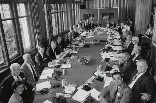 - 1986: les présidents de grandes entreprises européennes, japonaises et américaines réunis à Caux, dont Ryuzaburo Kaku (Canon) et Frits Philips (Philips), lancent la Table Ronde de Caux, pour éviter que les frictions commerciales ne dégénèrent en affrontements internationaux[85].