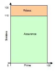 | Pour un quote-part, un ratio de partage est défini pour toutes les polices. Afin de garder les petits risques, il convient d'utiliser un autre type de réassurance: l'excédent de plein. C'est aussi un traité proportionnel, car les primes et les sinistres sont partagés selon un ratio défini à l'avance. On définit d'abord le plein de rétention: le réassureur va intervenir uniquement sur les polices dépassant un certain montant de garantie, appelée plein de rétention ou ligne (line). Ensuite, on peut définir le ratio du réassureur: (garantie - plein de rétention)/garantie. Ce ratio permet de partager les primes et les sinistres.