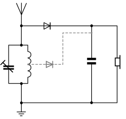 À ce stade le doubleur de tension (est pour atteindre des signaux plus élevés) par deux diodes à pointe en germanium ou des diodes pour faibles signaux.