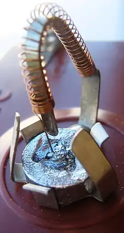 - ↑ Vidéo d'un détecteur en mine de crayon sur une tache de rouille