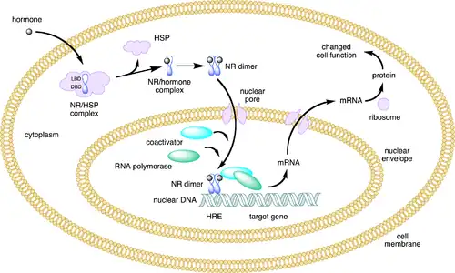 De nombreux récepteurs nucléaires fonctionnent avant tout comme des facteurs de transcription inductibles par un ligand (comme une hormone stéroïde, mais aussi par exemple certains lipides intracellulaires). Cependant beaucoup n'ont pas de ligand identifié, ils sont dits récepteurs nucléaires orphelins. De plus, certains récepteurs nucléaires ont des effets autrement que par leur qualité de facteurs de transcription. Ils peuvent par exemple agir sur d'autres voies de signalisation intracellulaire.