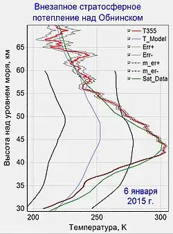 En 1979, les mesures météorologiques par satellites sont devenues beaucoup plus fréquentes. Bien qu'elles eussent été principalement utilisées pour la troposphère, elles avaient également enregistré des données pour la stratosphère. Aujourd'hui, les satellites, les radiosondes stratosphériques et d'autres instruments sont utilisés pour mesurer la stratosphère. L'image ci-contre montre ainsi en rouge la température mesurée selon les données de détection d'un lidar, la bleue est celle du modèle CIRA-1986, la verte est la donnée du satellite Aura/MLS.