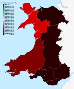 Avec une participation de près de 59 %, l’électorat gallois rejette massivement le projet de dévolution soumis à approbation avec plus de 79 % des voix en défaveur de la création de l’Assemblée galloise. Conséquemment, la loi de 1978 est abrogée par le Wales Act 1978 (Repeal) Order 1979.