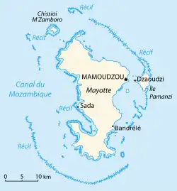 - ↑ Résolution du 18 avril 2008 du conseil général de Mayotte, JORF no 201 du 29 août 2008, p. 13631, texte no 111, NOR CTRX0820272X, sur Légifrance.
