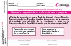 - ↑ (es) « Consulta de revocación de mandato: Esta será la pregunta que aparecerá en las boletas », sur elfinanciero.com.mx, .